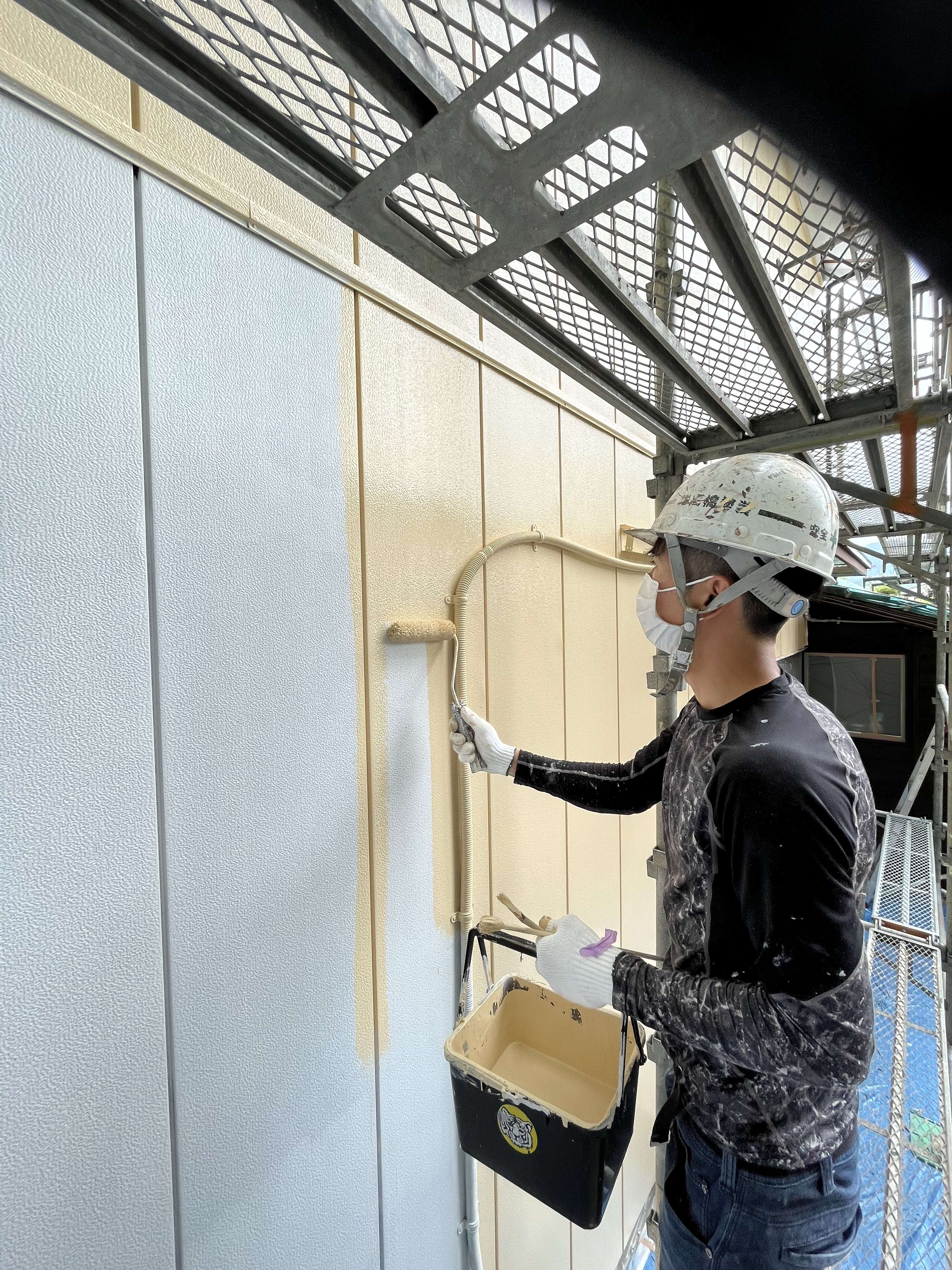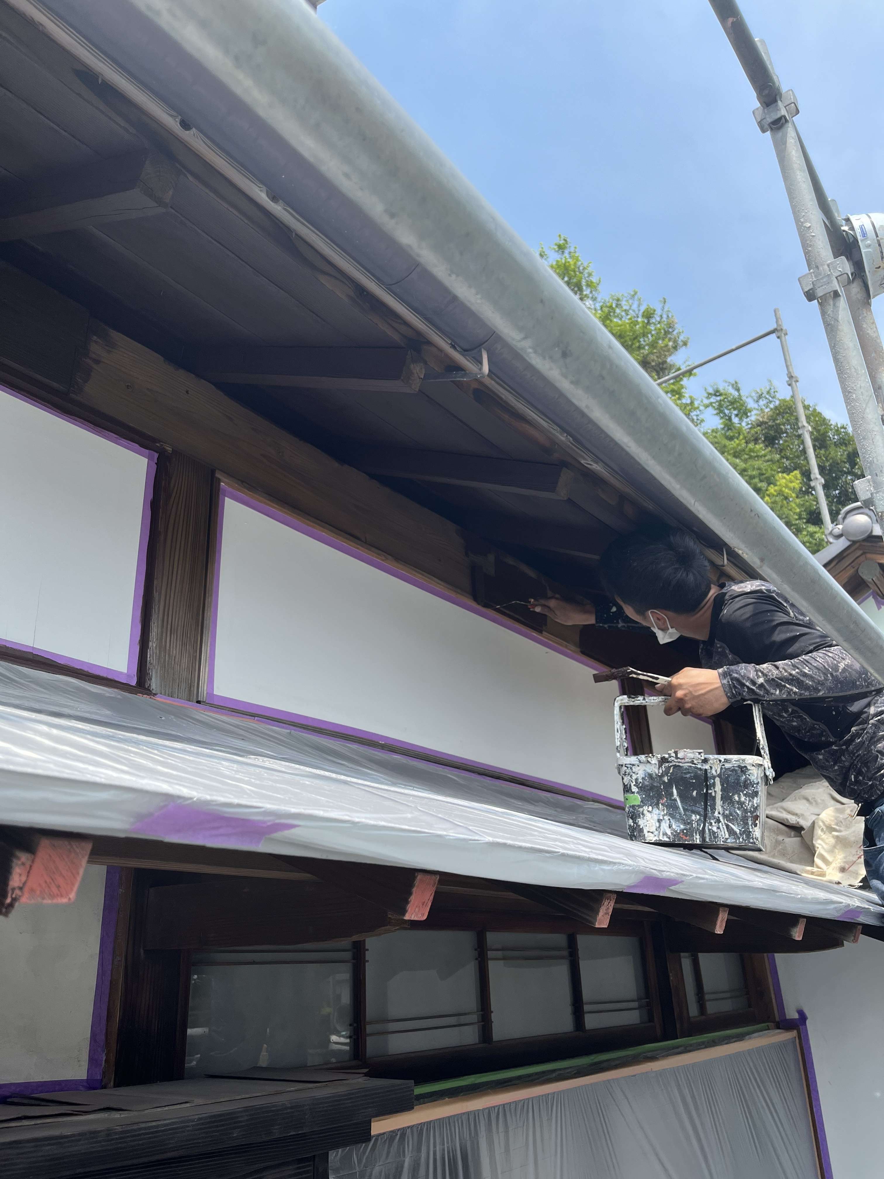 外壁塗装サイディング。 軒天、漆喰塗装。 外壁塗装木部面 キシラデコール(コンゾラン) 破風板塗装。 雨戸、雨樋塗装。 材料メーカーは日本ペイント塗料で施工しました。外壁、付帯に関しては共にシリコン2種液塗装で施工しました。